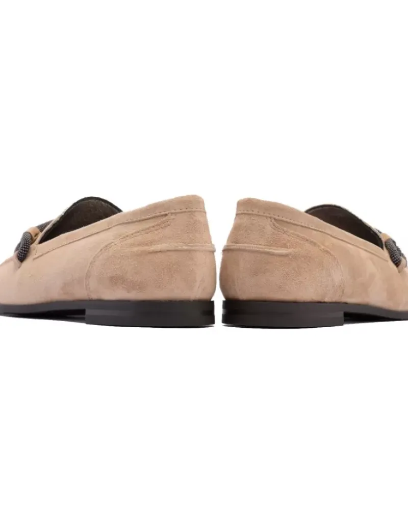 Mocasin Para Mujer Alpe New Roma, Fabricado En Piel (Baby Silk) De Color Arena Con Sin Tacon De 1 Cm, Suela Antideslizante Y Puntera Cuadrada, Sin Cierre.
