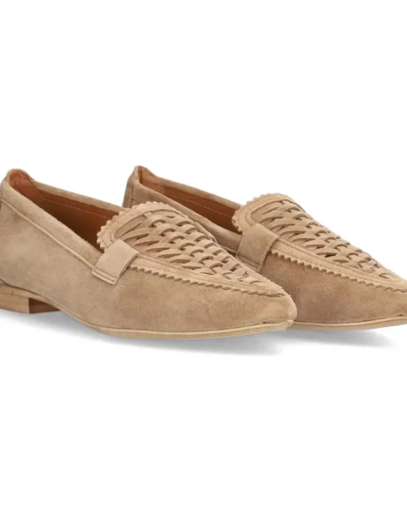 Mocasin Para Femme Alpe Niza, Fabricado En Piel (Baby Silk) De Color Cuero Con Tacon De 1 Cm, Suela Antideslizante Y Puntera Afilada, Sin Cierre.