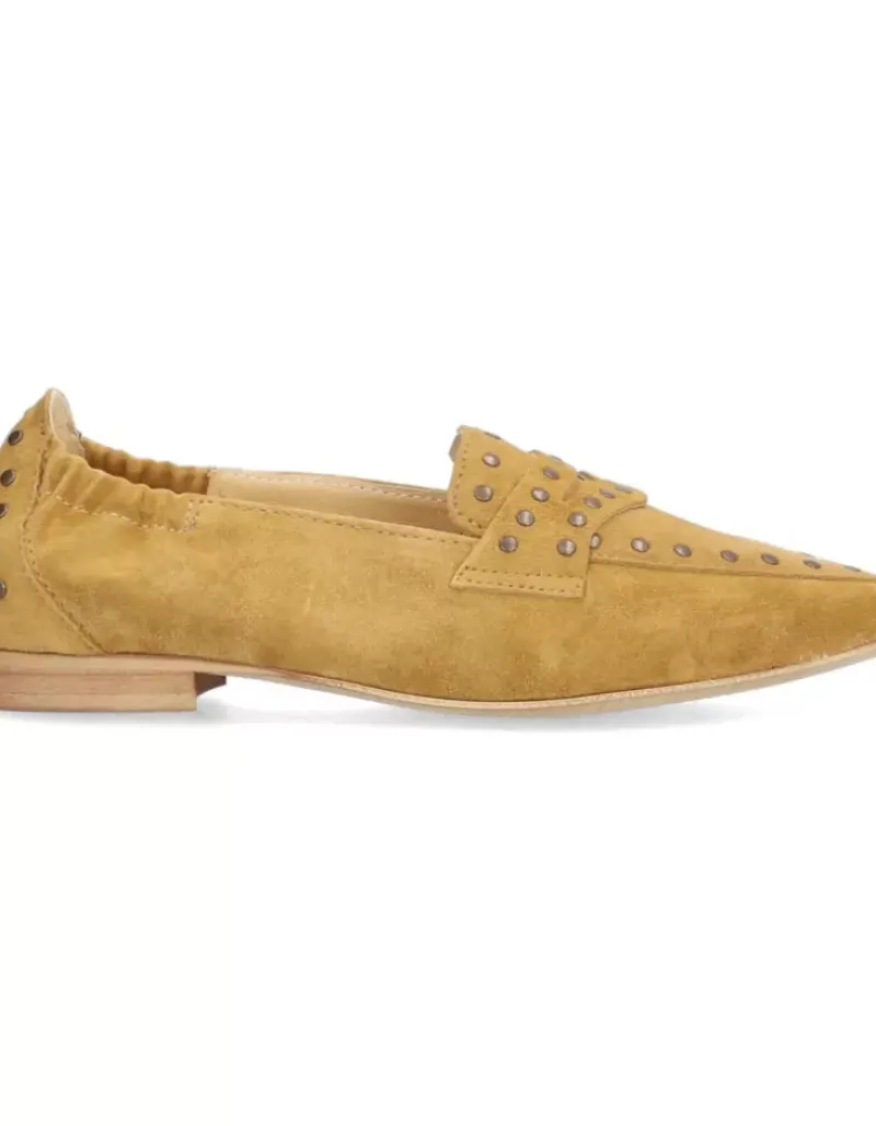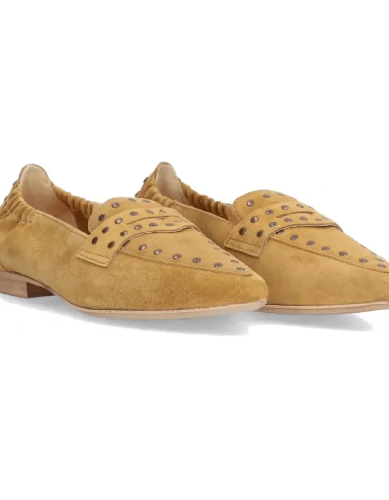 Mocasin Para Femme Alpe Niza, Fabricado En Piel (Baby Silk) De Color Senape Con Tacon De 1 Cm, Suela Antideslizante Y Puntera Afilada, Sin Cierre.