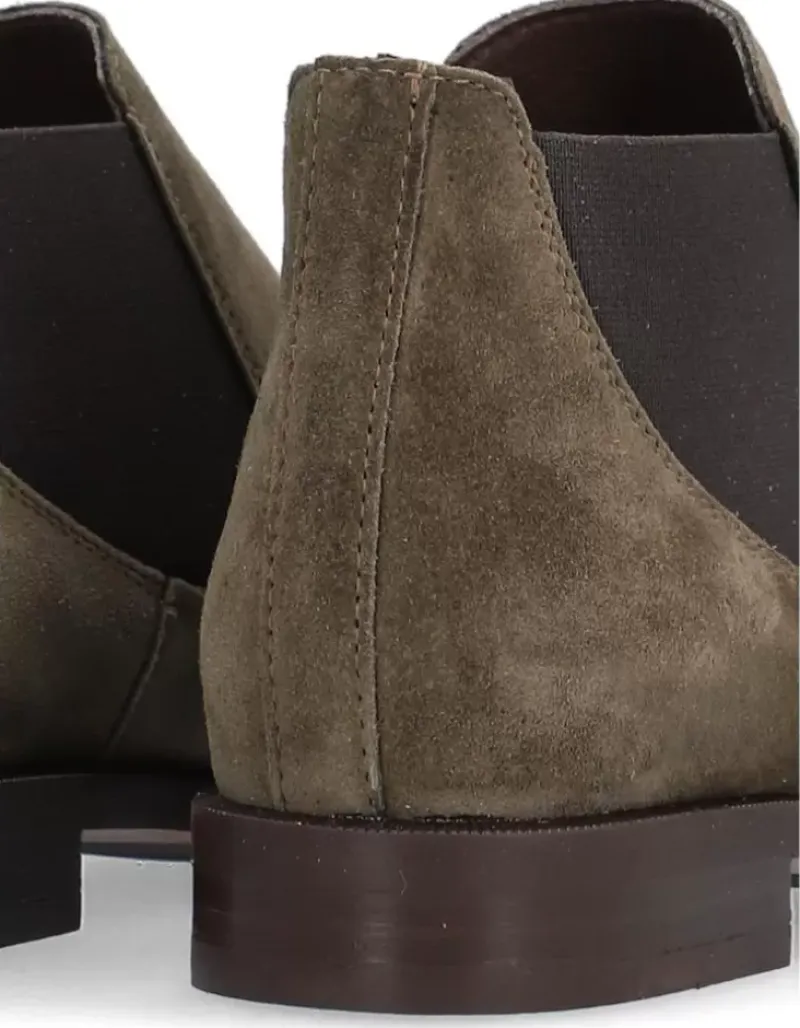 Botin Para Femme Alpe Parker, Fabricado En Piel (Baby Silk) De Color Kaki Con Tacon De 6 Cm, Suela Antideslizante Y Puntera Redonda, Sin Cierre Y Cana Baja.