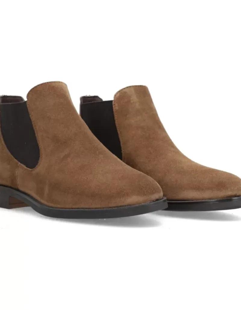 Botin Para Femme Alpe Parker, Fabricado En Piel (Baby Silk) De Color Sandalo Con Tacon De 6 Cm, Suela Antideslizante Y Puntera Redonda, Sin Cierre Y Cana Baja.