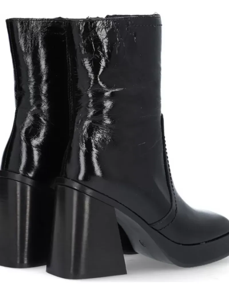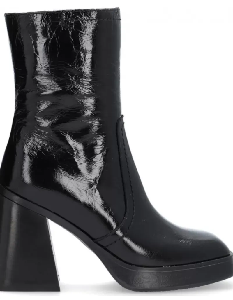 Bota Para Femme Alpe Retro, Fabricada En Piel (Vernice) De Color Negro Con Tacon De 9,5 Cm, Suela Antideslizante Y Puntera Cuadrada, Con Cierre Mediante Cremallera Y Cana Media.