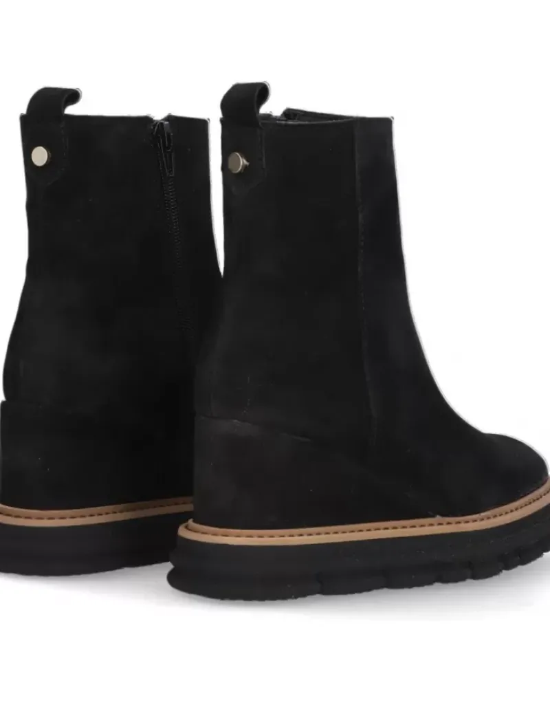 Botin Para Femme Alpe Sidney, Fabricado En Piel (Baby Silk) De Color Negro Con Cuna De 8 Cm, Suela Antideslizante Y Puntera Redonda, Con Cierre Mediante Cremallera Baja.