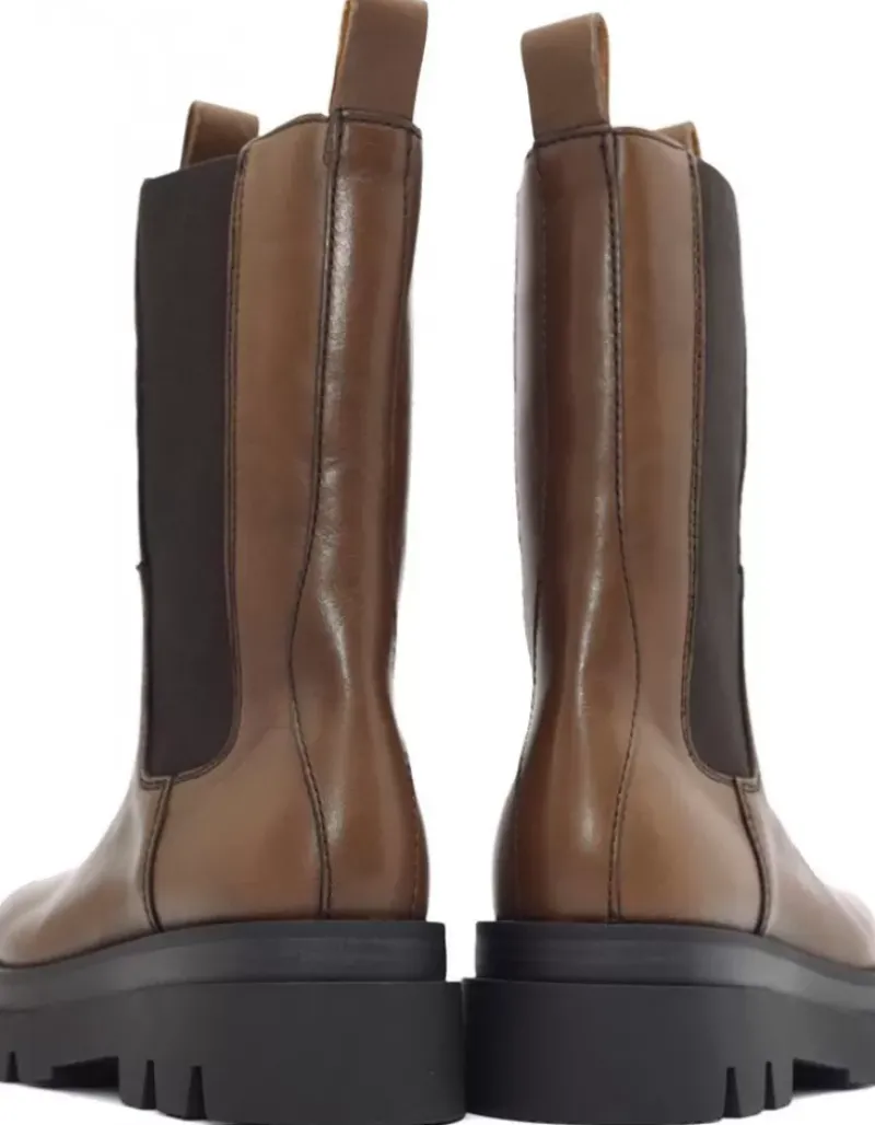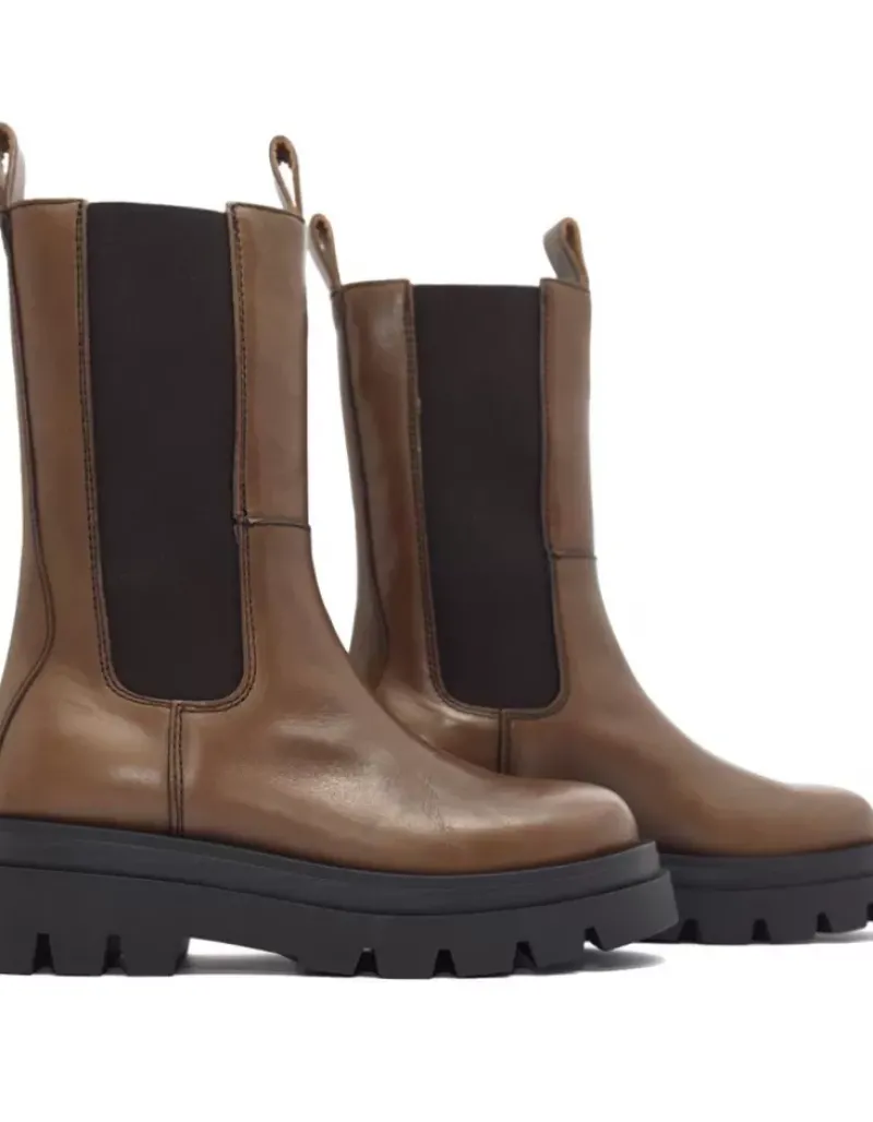 Bota Para Mujer Alpe Soho, Fabricada En Piel (Ball Lux) De Color Avellana Con Tacon De 5 Cm, Suela Antideslizante Y Puntera Redonda, Sin Cierre Y Cana Media.