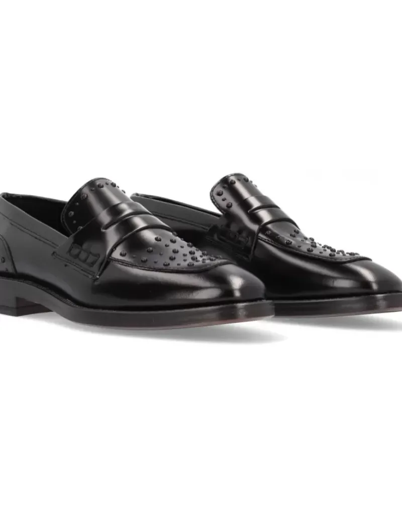 Zapato Para Mujer Alpe Thelma, Fabricado En Piel (Antic) De Color Negro Con Tacon De 3 Cm, Suela Antideslizante Y Puntera Cuadrada, Sin Cierre.