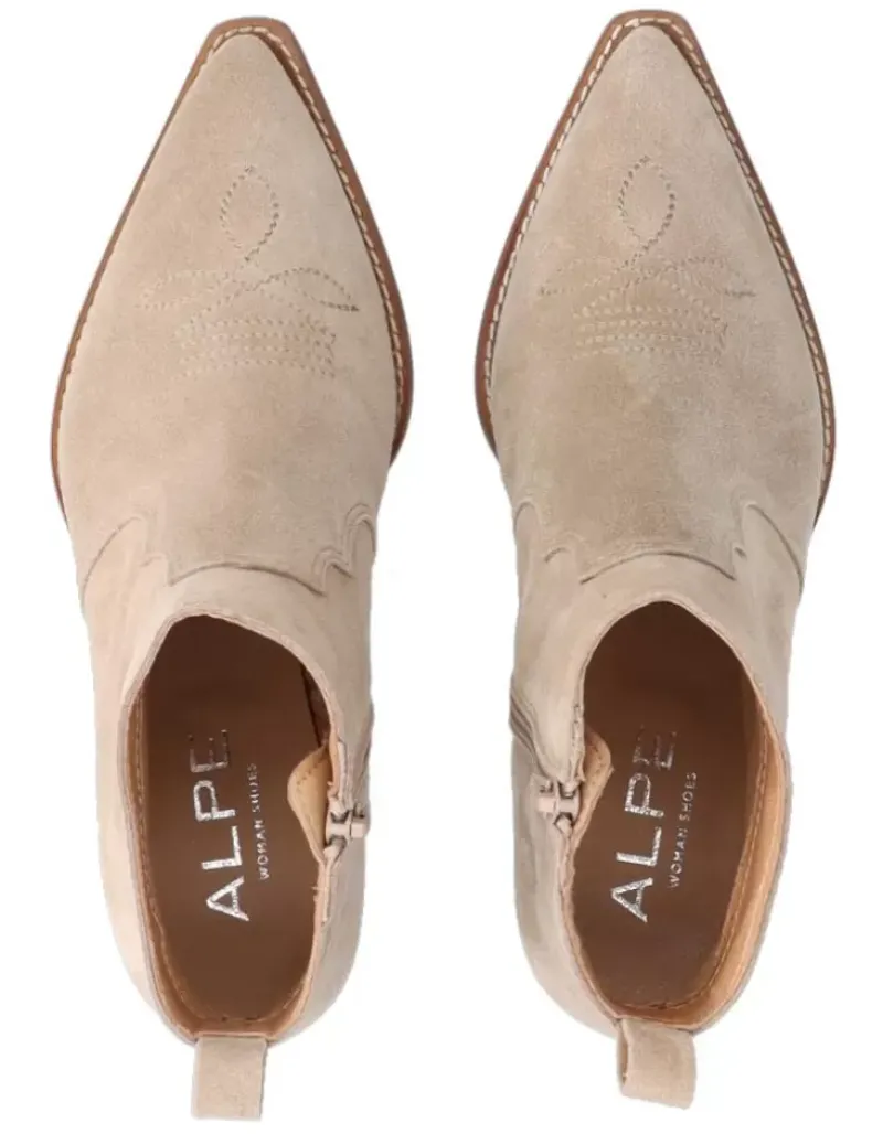 Botin Para Femme Alpe Trendy, Fabricado En Piel (Baby Silk) De Color Dessert Con Tacon De 4,5 Cm, Suela Antideslizante Y Puntera Afilada, Con Cierre Mediante Cremallera Y Cana Baja.