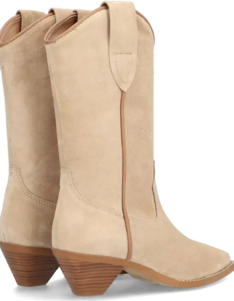 Bota Para Femme Alpe Trendy, Fabricada En Piel (Baby Silk) De Color Arena Con Tacon De 4,5 Cm, Suela Antideslizante Y Puntera Afilada, Sin Cierre Y Cana Media.