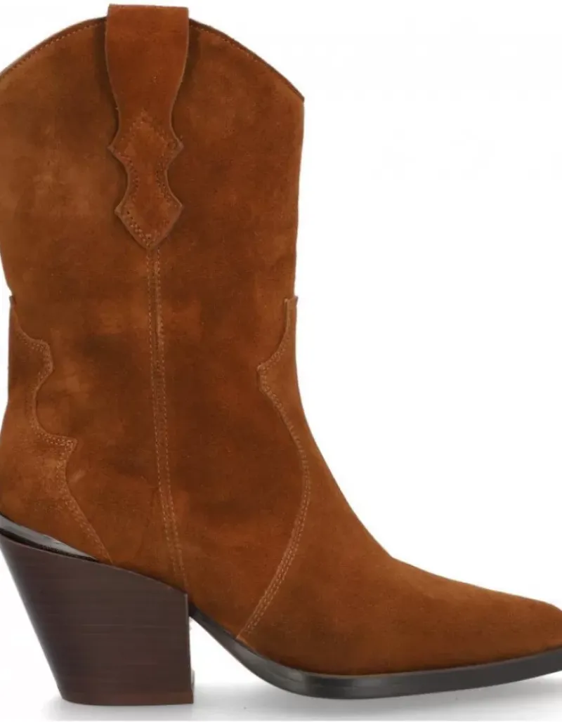 Bota Para Femme Alpe Vermont, Fabricada En Piel (Baby Silk) De Color Cuero Con Tacon De 6,5 Cm, Suela Antideslizante Y Puntera Afilada, Sin Cierre Y Cana Media.