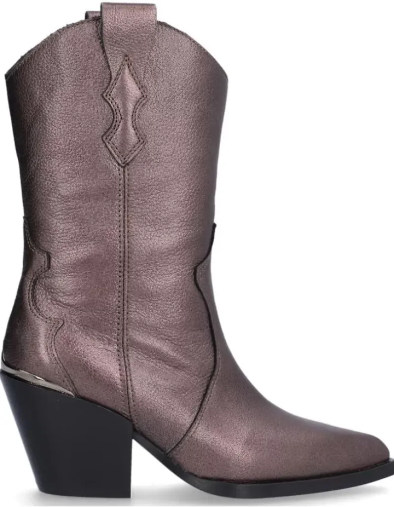Bota Para Femme Alpe Vermont, Fabricada En Piel (Gibson) De Color Smog Con Tacon De 6,5 Cm, Suela Antideslizante Y Puntera Afilada, Sin Cierre Y Cana Media.