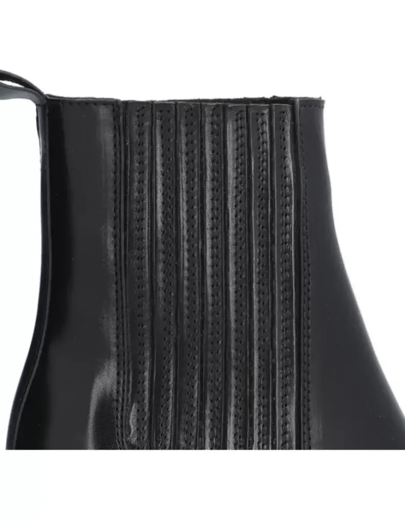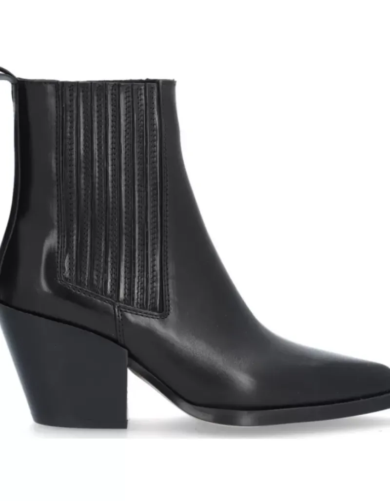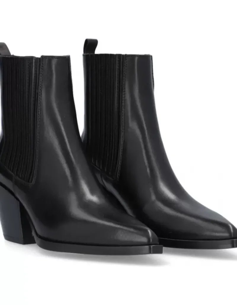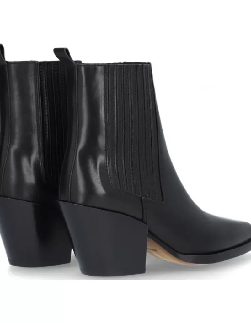 Botin Para Femme Alpe Vermont, Fabricado En Piel (Becerro) De Color Negro Con Tacon De 6,5 Cm, Suela Antideslizante Y Puntera Afilada, Sin Cierre Y Cana Baja.