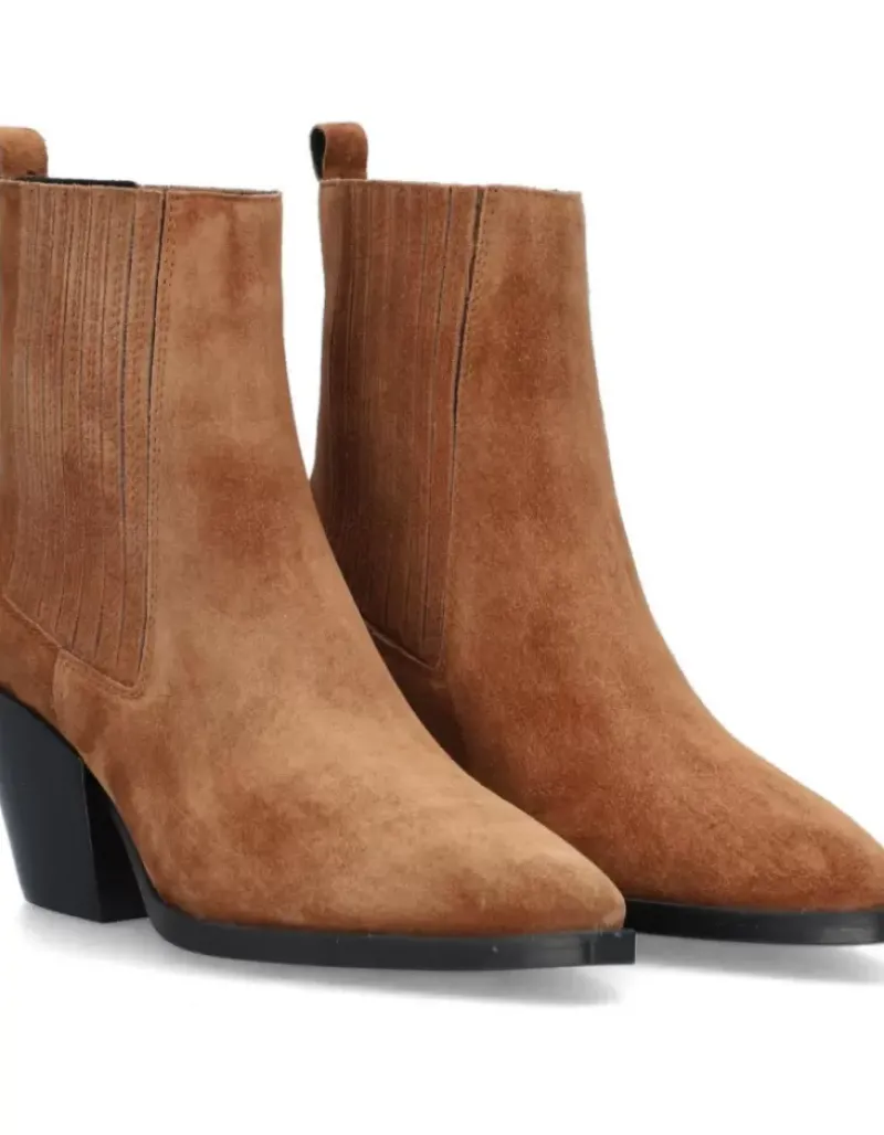 Botin Para Femme Alpe Vermont, Fabricado En Piel (Baby Silk) De Color Sella Con Tacon De 6,5 Cm, Suela Antideslizante Y Puntera Afilada, Sin Cierre Y Cana Baja.