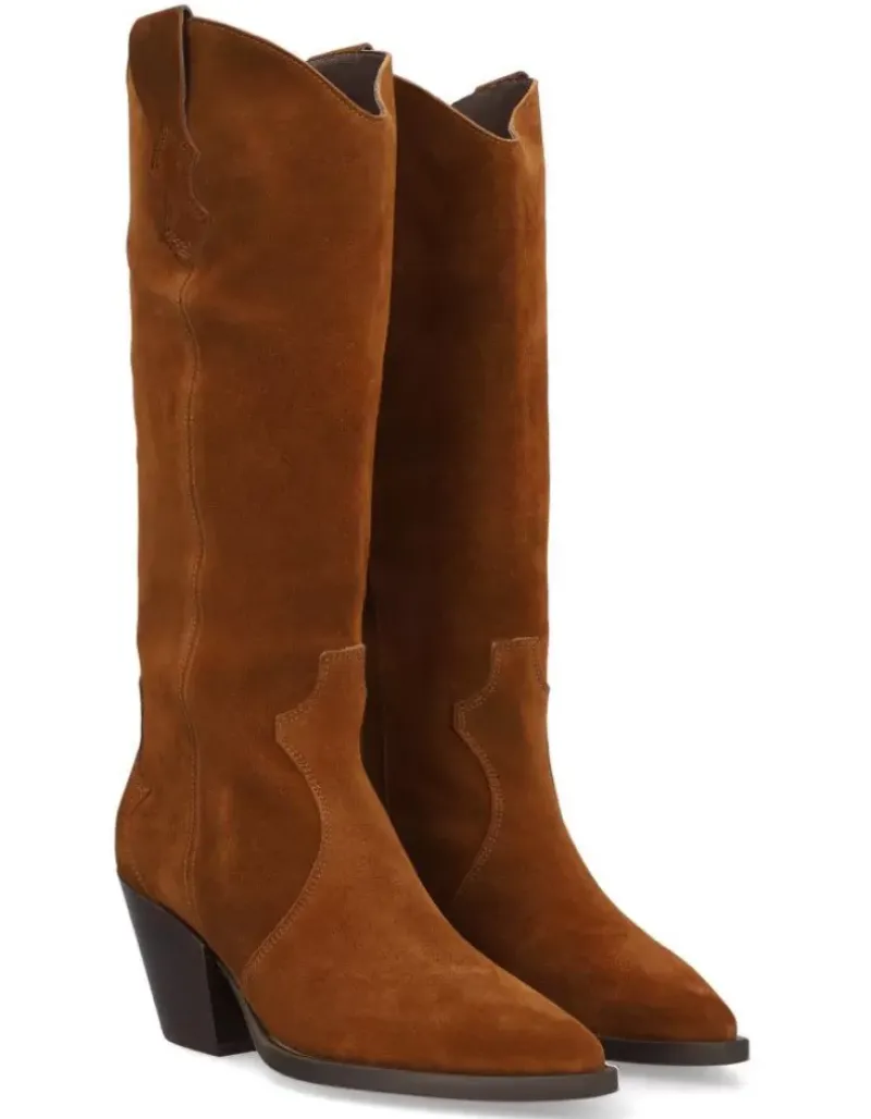 Bota Para Femme Alpe Vermont, Fabricada En Piel (Baby Silk) De Color Cuero Con Tacon De 6,5 Cm, Suela Antideslizante Y Puntera Afilada, Sin Cierre Y Cana Alta.
