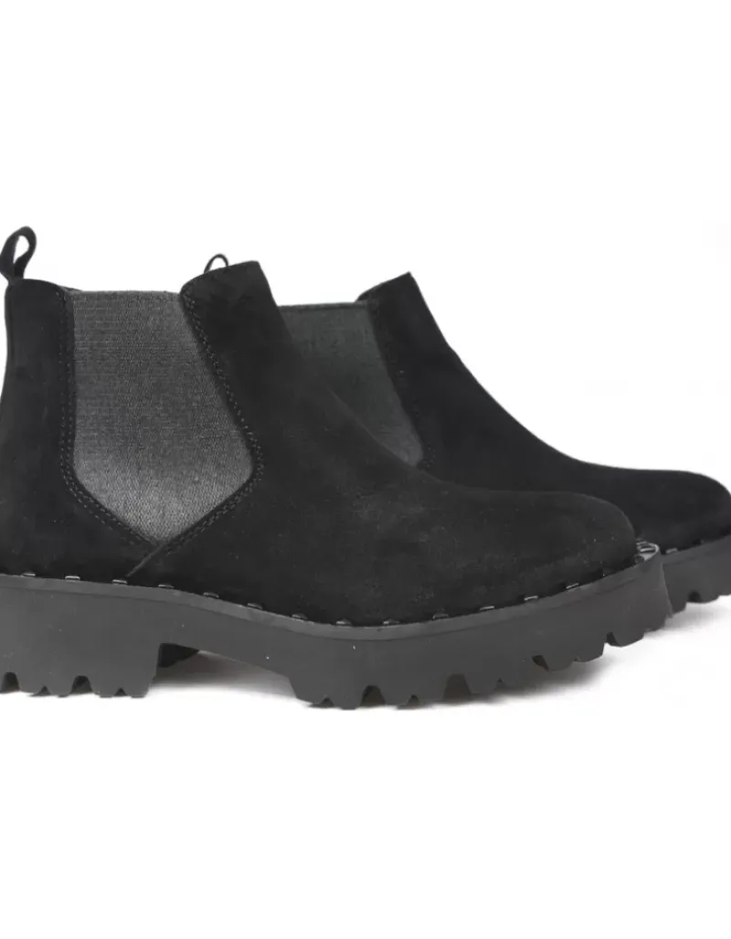 Botin Para Femme Alpe Verona, Fabricado En Piel (Baby Silk) De Color Negro Con Tacon De 4,5 Cm, Suela Pu Y Puntera Redonda, Sin Cierre Y Cana Baja.