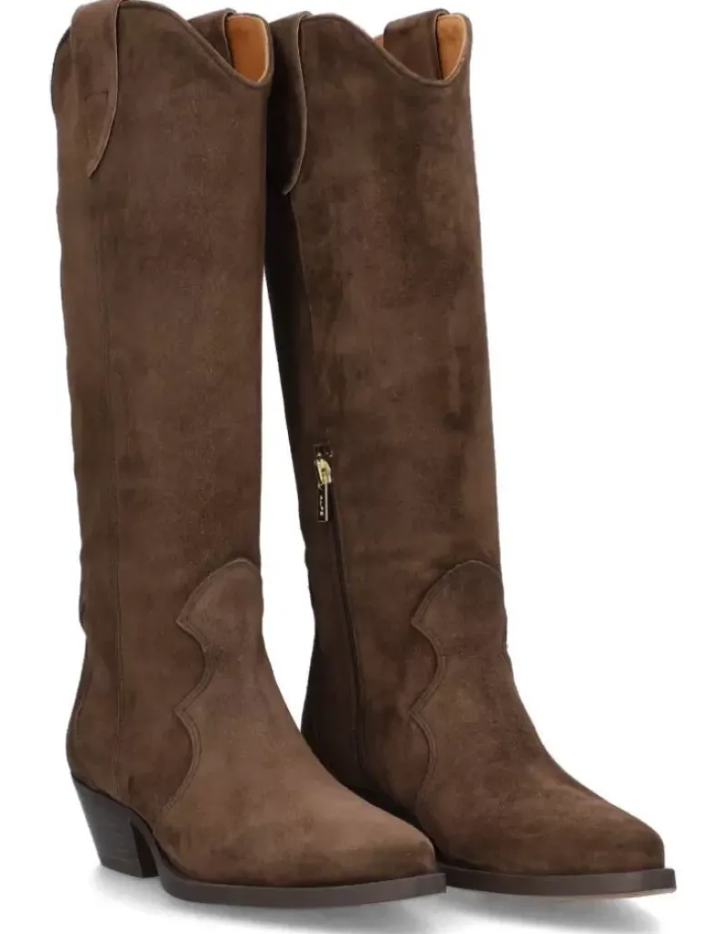 Bota Para Femme Alpe Western, Fabricada En Piel (Baby Silk) De Color Arabica Con Tacon De 4,5 Cm, Suela Antideslizante Y Puntera Afilada, Con Cierre Mediante Cremallera Y Cana Alta.